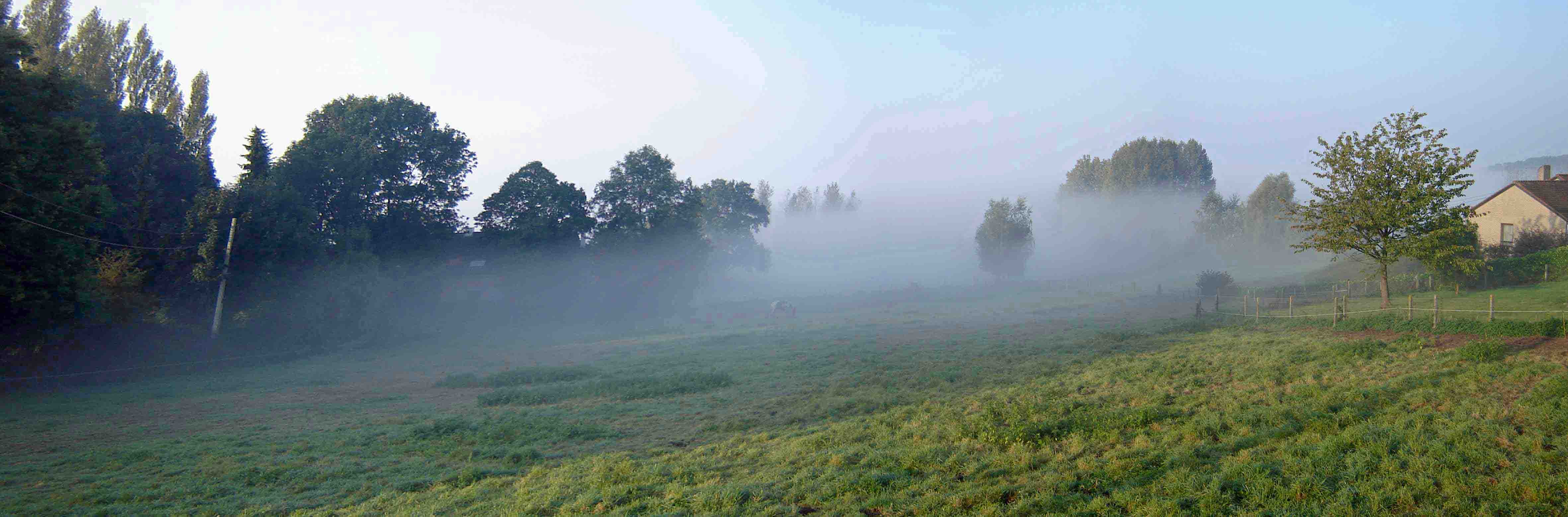 Difficile de voir cependant Monts ou Moulins durant les premiers kilomètres tant le brouillard était dense. La montée du Mont de l’Enclus permettait d’apercevoir le soleil mais la descente nous ramenait rapidement dans la brume, un peu frisquette. Il a fallu attendre avant que les éclaircies prennent le dessus et que l’on puisse retirer quelques épaisseurs. Pour autant, vers midi, les abords du Mont Saint Aubert étaient toujours dans la grisaille.
