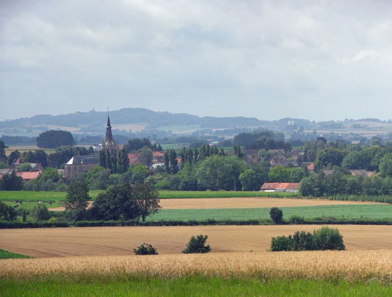 Pas de surprise pour l’itinéraire : direction, Frelinghien, Le Bizet, Nieuwkerke puis l’enchaînement Mont Rouge, Mont-Noir. Profitant de ce que la route qui va vers Berten était fermée à la circulation, je l’empruntai pour rejoindre le Mont des Cats sans trop de détours et descendre ensuite vers Godesvarwelde, lieu du rendez-vous, où j’arrivai à l’heure.