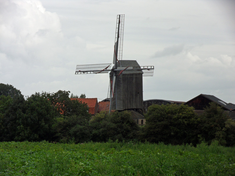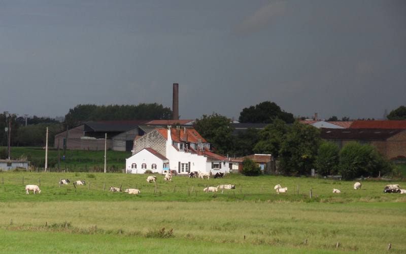 Le ciel quoique chargé offrait pourtant des espaces dégagés qui laissait envisager un temps nuageux mais sec. Si les ondées apparues dans la première partie du parcours de 110 km ne prêtaient pas à conséquence il en fut tout autrement après le second ravitaillement. Peu après le second passage à Boeschepe, cela se transforma en un véritable déluge, incitant certains à s’arrêter pour profiter de l’abri précaire d’une avancée de toit. Ne prévoyant pas d’accalmie prochaine, je préférai continuer, accélérant la cadence afin d’essayer de me réchauffer, mon coupe vent débardeur ayant depuis longtemps cessé de m’apporter une quelconque protection.