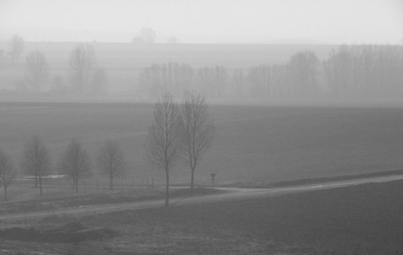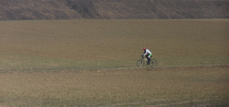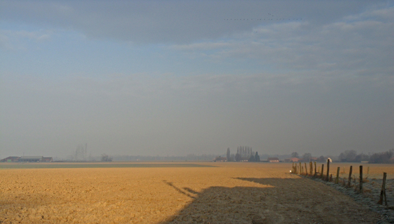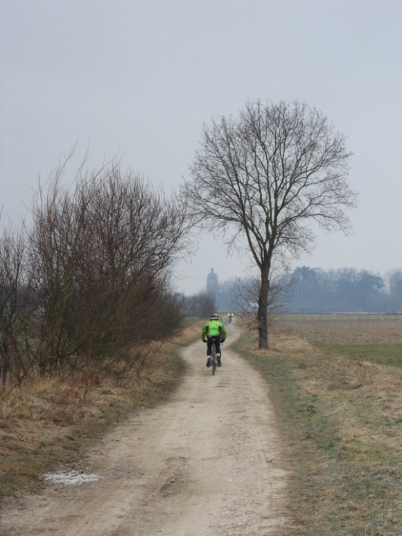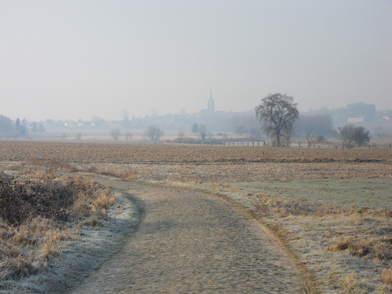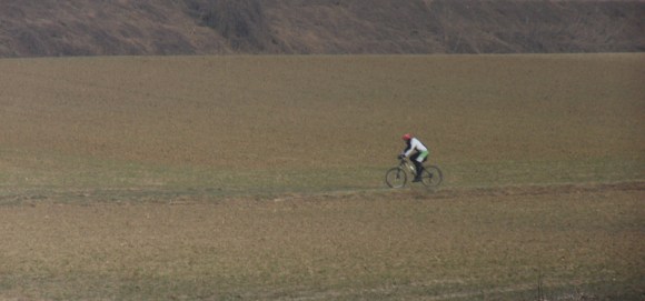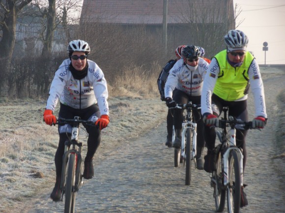 Cependant, une fois dans le vif du sujet cette tenue me donna toute satisfaction et c’est dans de bonnes conditions que je pus apprécier le circuit de quarante kilomètres. C’est un parcours varié qui passe et repasse par Mons en Pévèle. Routes pavées et chemins agricoles étaient très roulables ce matin, le sol étant dur sans être glissant. Le contraste était saisissant avec les chemins détrempés d’il y a un mois.
