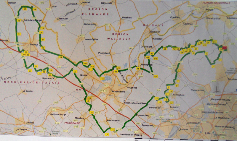 J’avais également oublié le contournement de Bailleul pour rejoindre Saint-Jans Cappel et les beaux panoramas sur les Monts des Flandres.