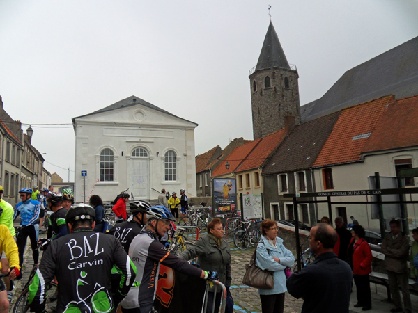 Si le paysage prend des formes, les choses sérieuses ne commencent qu’à une dizaine de kilomètres avec la côte d’Elfaut, petite mise en jambes, bienvenue en ce qui me concerne car j’ai un peu de mal à me réchauffer après l’arrêt à Roquetoire. Une belle descente nous amènera à Wismes, dont on pressent que le soleil en accroîtrait le charme.