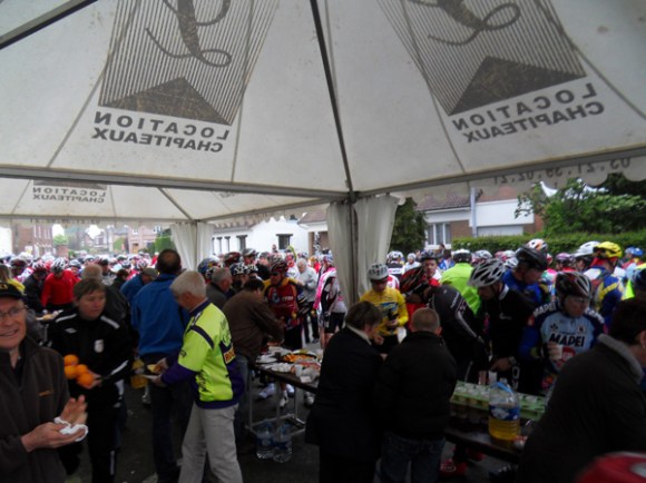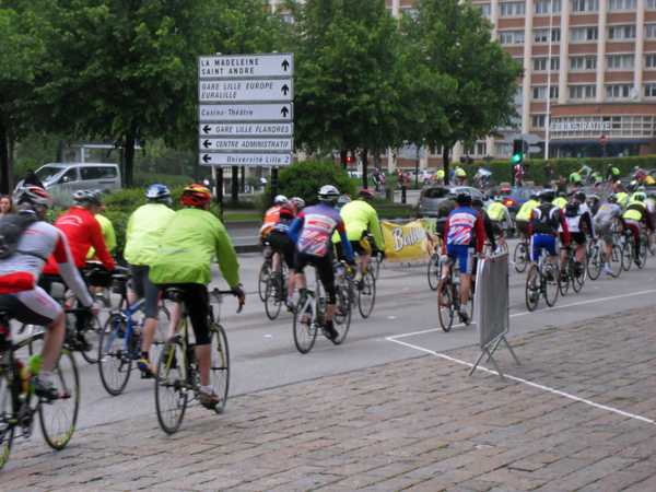 Le départ donné, c’est un flux continu de cyclistes qui se forme et il en sera ainsi pendant pratiquement les vingt premiers kilomètres. La prudence est de mise car il en est qui, à la recherche d’un record ou de leurs équipiers, doublent ou slaloment de façon parfois inconsidérée.