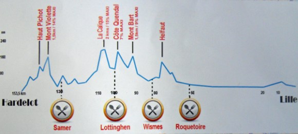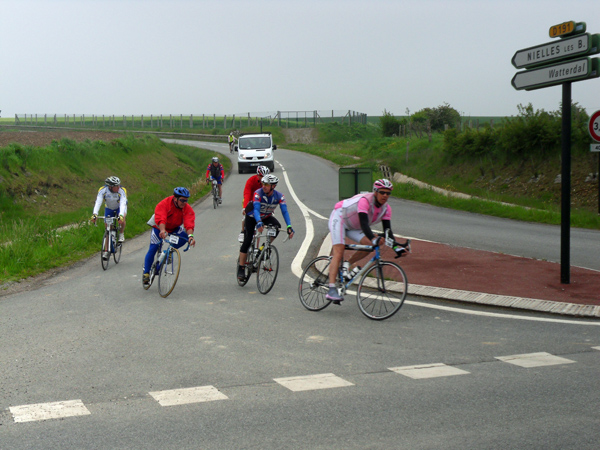 Entre Wismes et Lottinghem, point de ravitaillement suivant, deux côtes significatives, celles du Mont Bart et la côte de Quendal dont les pourcentages maximum restent cependant à un chiffre. Elles n’en contribueront pas moins à étirer les groupes.