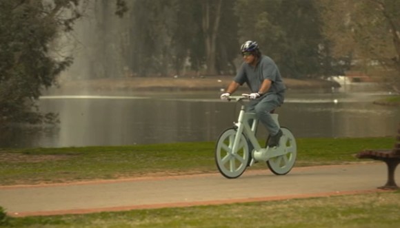 C’est l’œuvre d’un chercheur israélien, Izhar Gafni, qui a eu l’idée de cette construction après avoir eu connaissance d’un canot fabriqué dans cette matière. Dénommé Alfa, ce vélo est né au terme d’une phase de conception de trois ans.