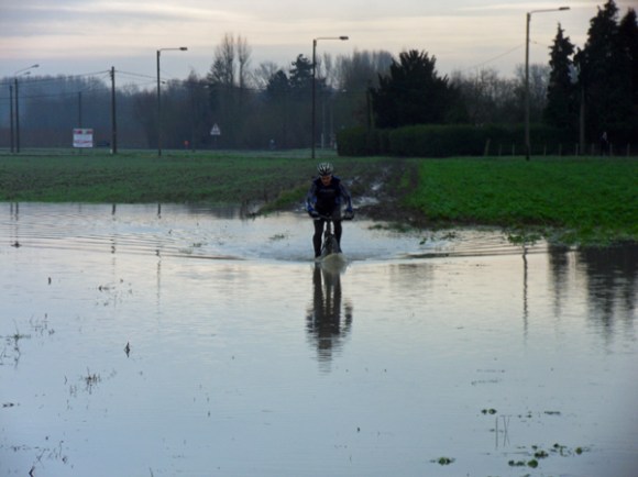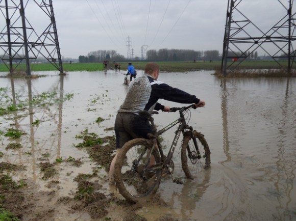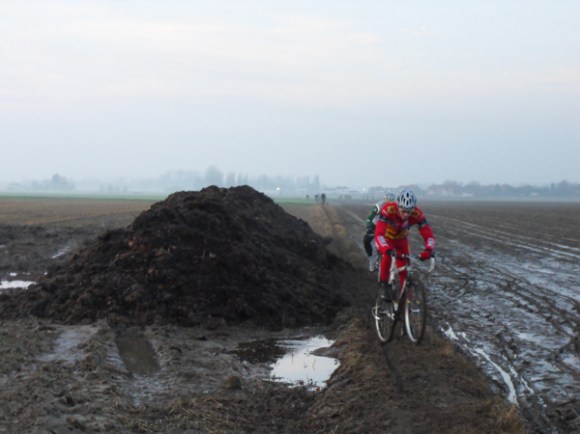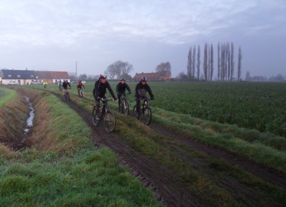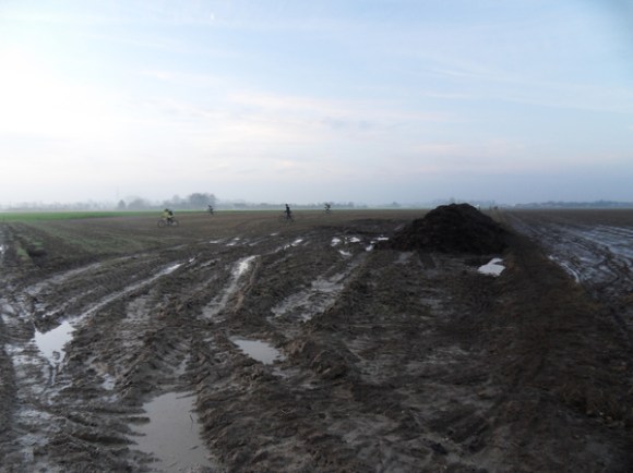 Cette opération de maintenance se révéla opportune car le parcours du jour, bien que plat, nécessita à plus d’un moment d’appuyer sur les pédales en raison de la boue.