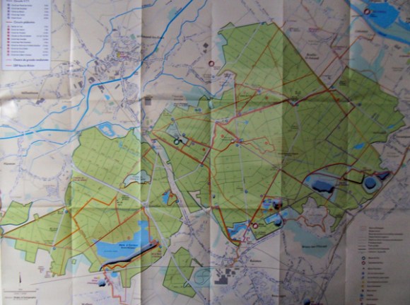 Hésitant entre un parcours route ou VTT, je recherchai en vain les topos du Conseil général. Ayant trouvé au hasard de mes recherches une carte détaillée de parcours dans la forêt de Saint Amand, j’optai finalement pour cette destination, déjà envisagée la veille.