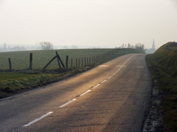 J’atteins Hornaing alors que le ciel rosit et poursuis ma route dans la fraicheur matinale, givrée par endroits.