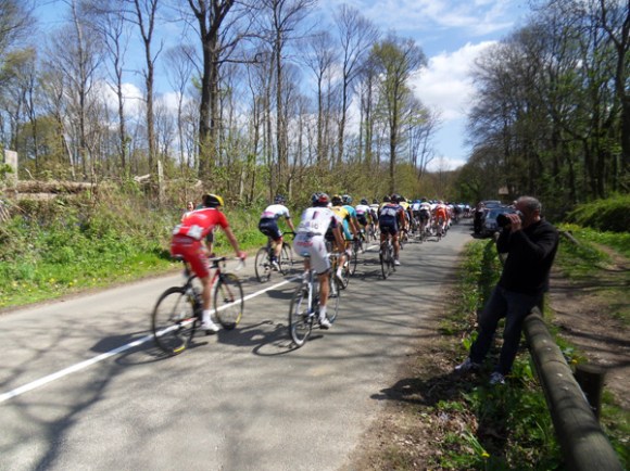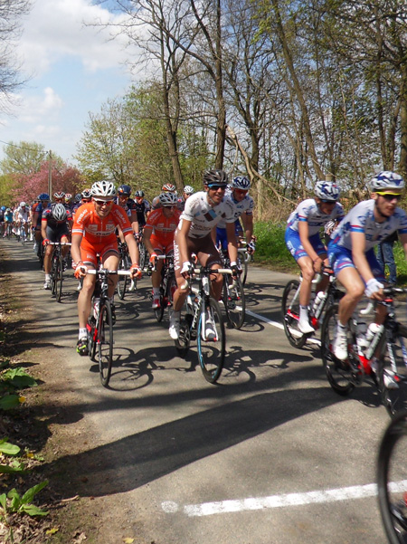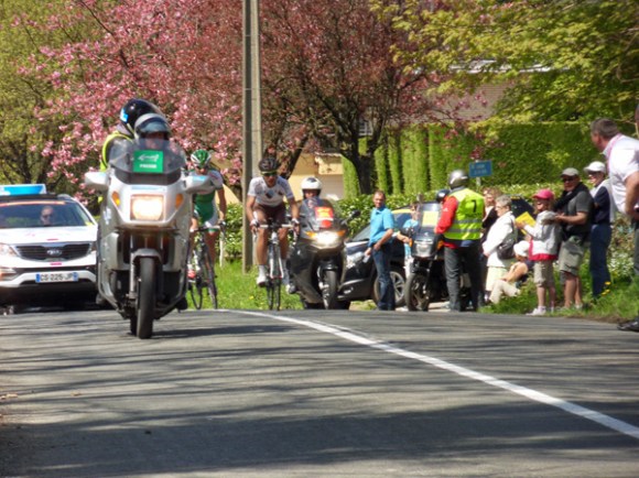 Quelques minutes plus tard, passage fugace d’un second groupe, puis du peloton. Il ne s’écoulera pas plus d’une minute entre le passage du premier et du dernier coureur, ainsi qu’en fait foi l’horodatage de mon appareil photo.