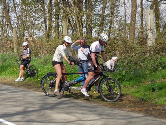 Mais avant de partir, il me faudra réparer une crevaison survenue de façon fort étrange. Alors que j’attendais le passage des coureurs, un bruit d’air expulsé attira mon attention. Pas de ballon ou d’arche gonflé à l’horizon qui pût l’expliquer. Force fut de constater que c’était mon pneu arrière qui en était à l’origine, ce alors que mon vélo était stationné depuis plusieurs minutes au même endroit et que personne n’en était à proximité. La crevaison demeure finalement une chose bien mystérieuse.