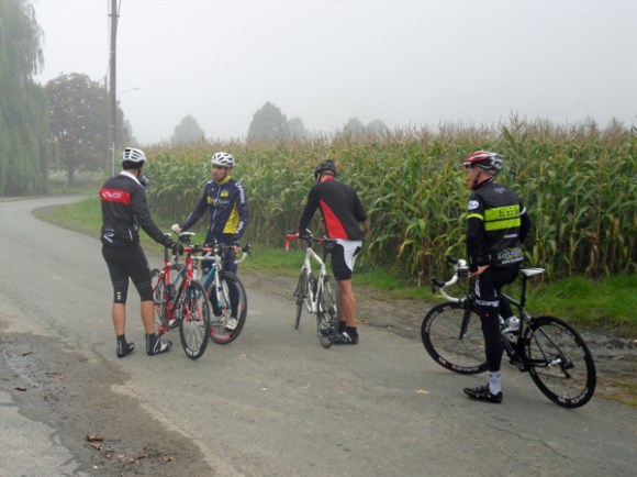 En dehors de considérations relatives à la visibilité, il fallait demeurer attentif car le club voisin de Mouscron organisait son brevet ce même jour, balisé lui aussi par des flèches jaunes. Adeptes du CCH ou du CCM se croisèrent donc à de multiples reprises, exerçant leur vigilance pour ne pas se tromper d’aiguillage.