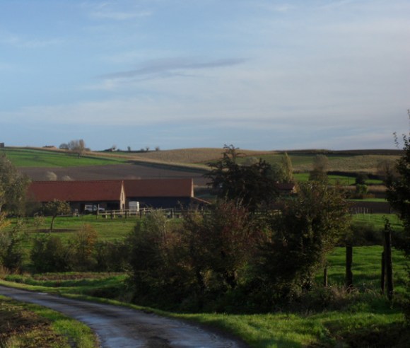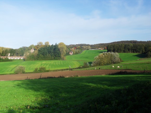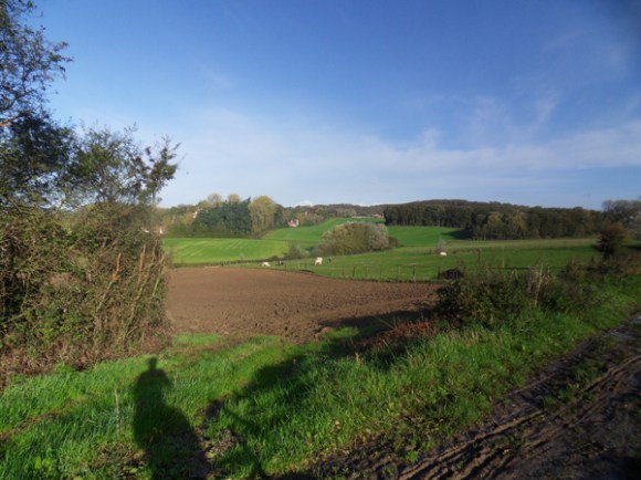 Les chemins pédestres abondent et je passe de l’un à l’autre tantôt montant, tantôt descendant, à flanc de coteau, en sous bois, sur des chemins agricoles plus ou moins détrempés. Le terrain est varié, ce qui en fait le charme.