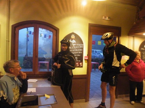 Arrivé à huit heures, je m’apprêtais à partir quand les deux cyclos présents, dont j’étais, furent sollicités pour participer à une photo de groupe aux côtés des organisateurs, afin de satisfaire un journaliste matinal.