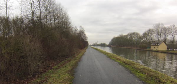 Court passage reposant le long du canal de la Deûle, avant le ravitaillement.