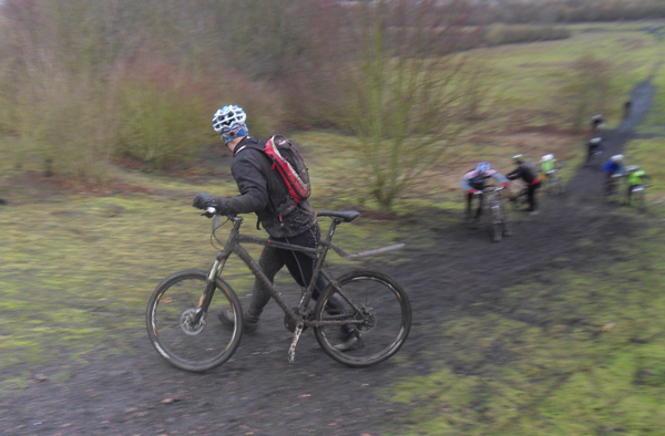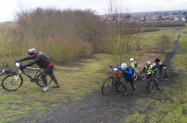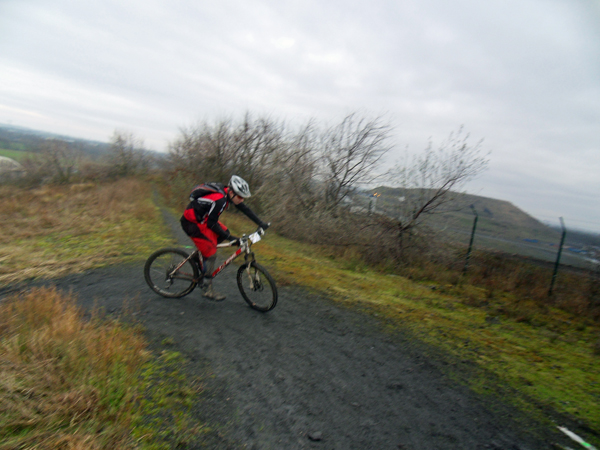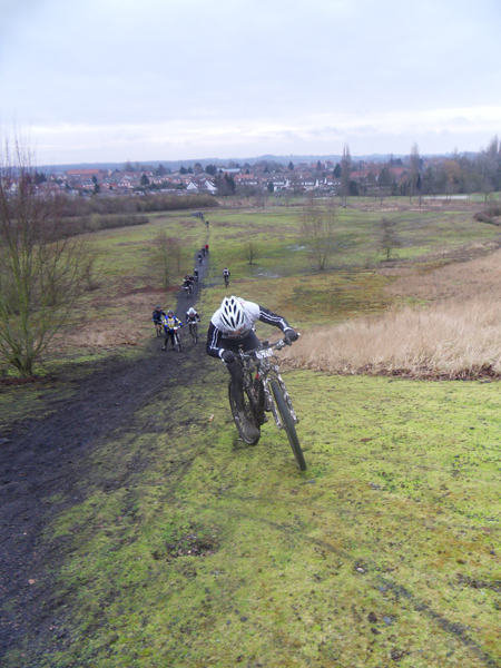 Premier terril, première difficulté, une courte pente raide et boueuse après un virage à gauche.