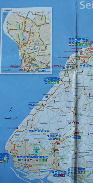Il sera plus compliqué de rejoindre le Havre, dans l’entrelacs de voies rapides interdites aux vélos. Grâce aux indications de cyclistes j’y parviendrai néanmoins, étant attentif à bien mémoriser l’itinéraire en prévision du retour nocturne. Ce fut effectivement prudent, tout comme le fait d’avoir emmené une lampe car une bonne partie du trajet ne bénéficiait pas de l’éclairage urbain et mon éclairage de signalisation se serait révélé nettement insuffisant.