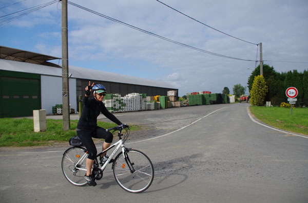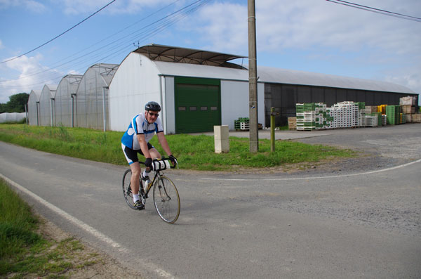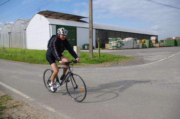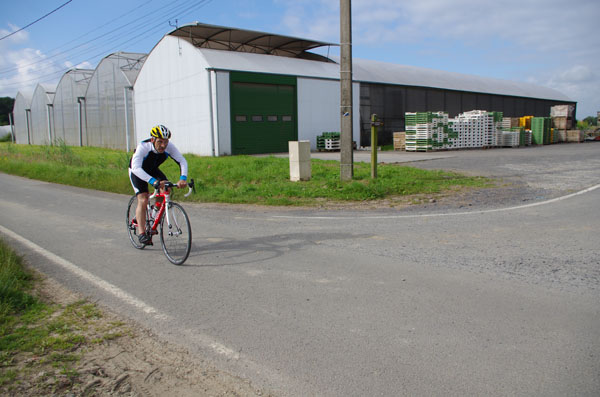 A trop me concentrer sur le sujet, j’en ai oublié l’arrière plan pour mes clichés de cyclistes en mouvement. S’il rend compte de l’activité maraîchère dans les environs de Lille, celui-ci aurait pu être plus bucolique.