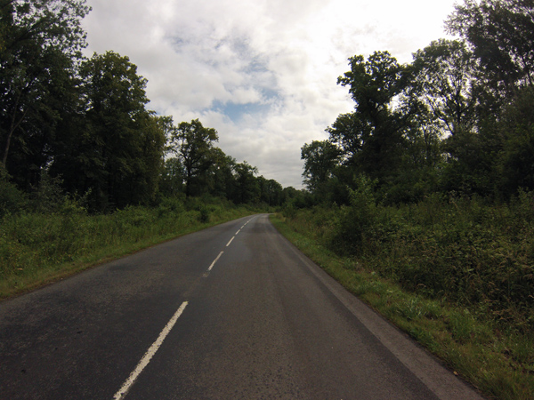 Une crevaison en décidera autrement. Deuxième de la journée, je réalise que ma seconde chambre à air n’est pas adaptée à ma nouvelle roue arrière dont le profil exige une valve plus longue. Il me faut donc réparer et je vois avec inquiétude se rapprocher des nuages menaçants. J’aurai juste le temps de remettre ma roue arrière et mon coupe pluie avant qu’une forte ondée ne s’abatte.