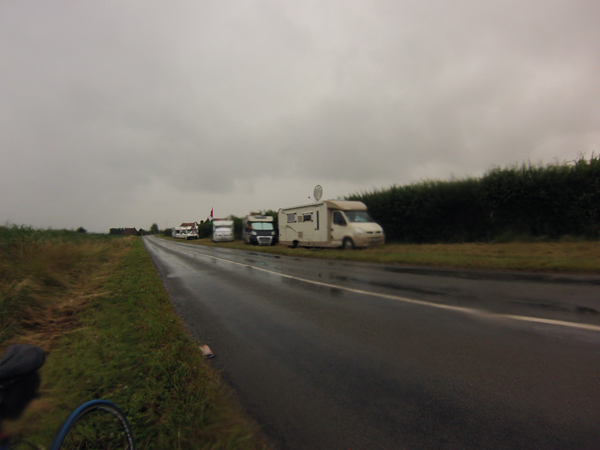 Le parcours ignore le Mont des Cats et nous filons vers Boschepe, puis Berthen avant de bifurquer vers le Mont Noir. Des camping cars stationnent déjà et je me plais à m’imaginer au chaud et au sec en train de regarder l’étape du jour.