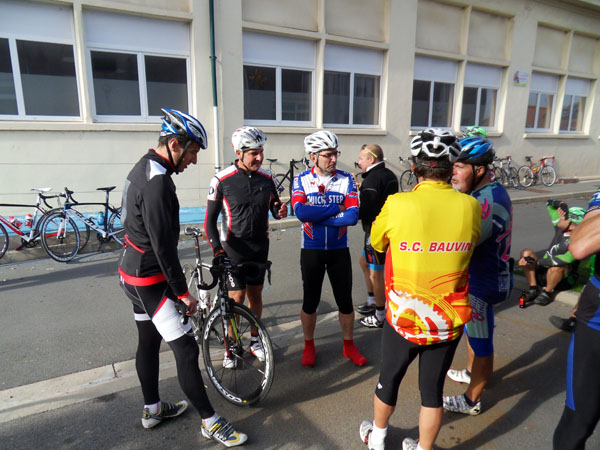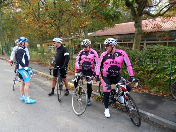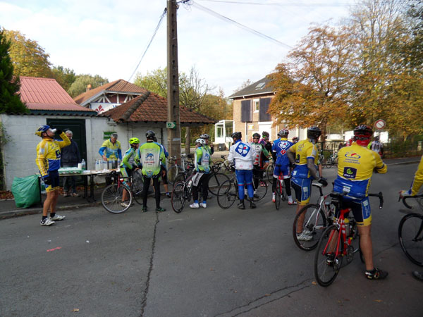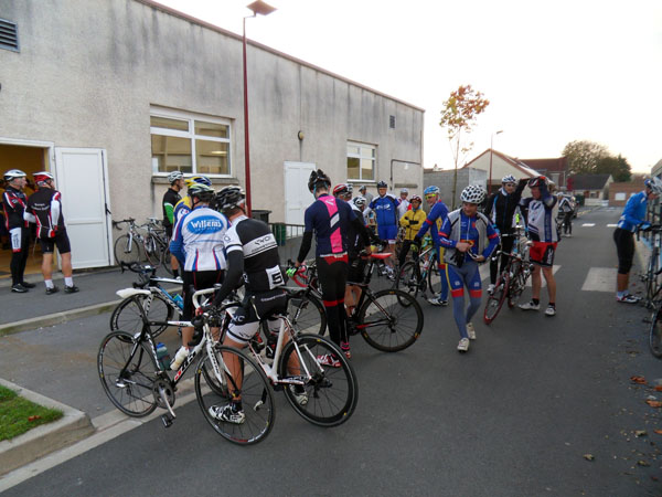 Des arrivées échelonnées, pour les 375 participants (chiffre officiel) du brevet route. La distance courte autorisait de ne pas partir dès potron-minet. Parti moi-même d’Estvelles à 8h30, je croiserai plusieurs groupes s’y rendant.