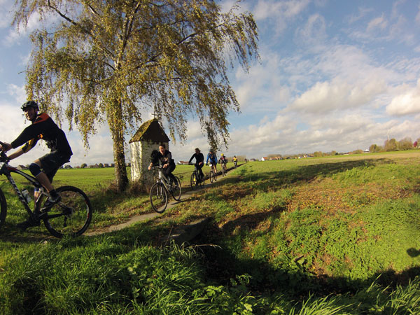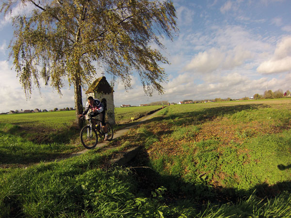 Ce circuit dénommé « Entre les 2 monts » (Dwars door de 2 bergen) entraînait les plus costauds entre Mont Saint Aubert et Mont de l’Enclus, chacun franchi deux fois, pour une distance de 65 km. Pour ce premier brevet VTT de la saison mais aussi compte tenu du dénivelé, je me contenterai du 45 km qui délaissait le Mont Saint Aubert.