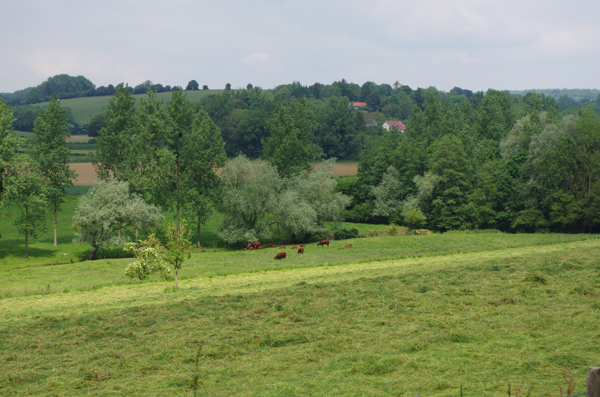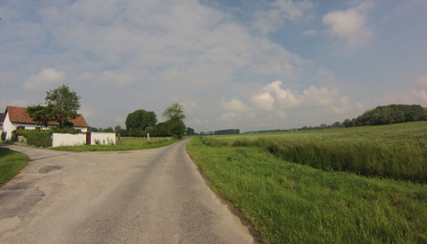 Après un solide pique nique, je traverse l’Authie en direction de Tortefontaine et emprunte à gauche la D 138E qui mène à Gouy Saint André, non sans avoir hésité la route grimpant plutôt droit dans la pente. Alors que je suis déjà bien engagé, je suspecte une crevaison à l’arrière, mais il n’en est rien. Mon pneu arrière est sans doute un peu sous gonflé et n’amortit pas complètement les vigoureux coups de pédales que nécessite la déclivité. J’achève la montée le souffle un peu court et deux kilomètres permettent de récupérer avant une autre côte à l’entrée de Gouy Saint André. De là, j’atteins Campagne les Hesdin puis Beaurainville.