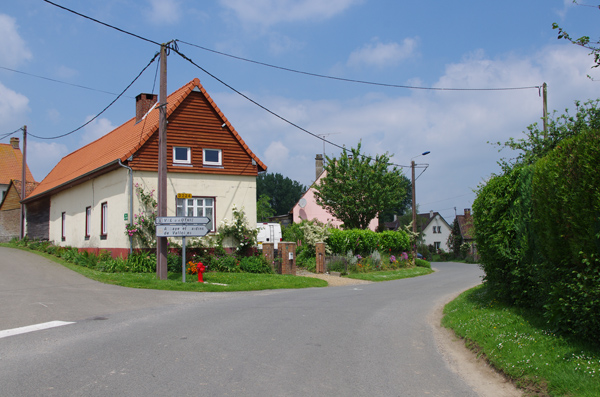 A Colline Beaumont, je rejoins la vallée de l’Authie et suit sa rive gauche par la D 485. La route est très agréable, offrant de larges points de vue sur la vallée. On croise de pimpants pavillons fleuris. Je néglige l’Abbaye de Valloires, déjà visitée, et poursuit jusque Ponches-Estruval.