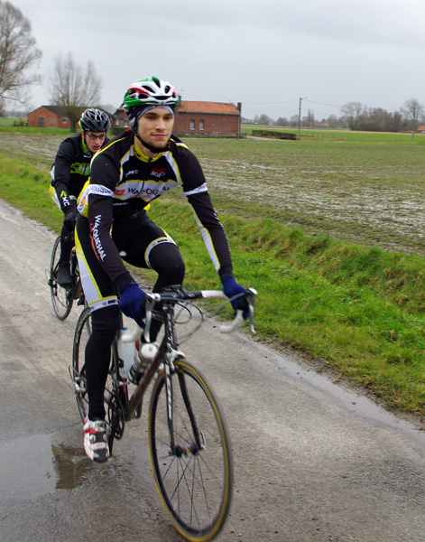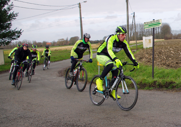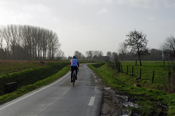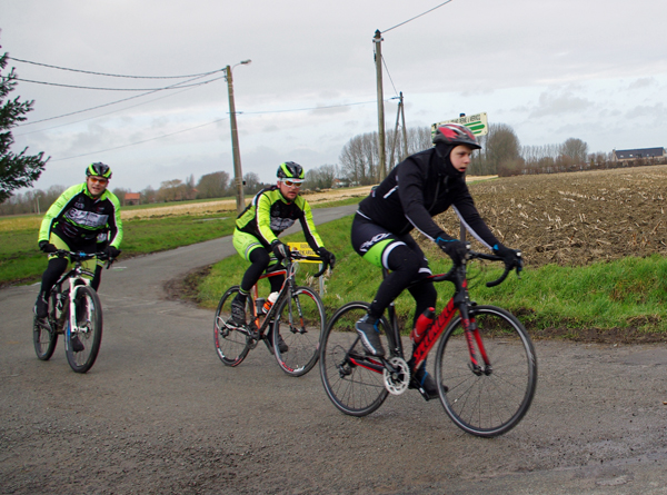La première partie du circuit de 75 kilomètres qui nous menait vers Frelinghien fut accomplie vent debout. A Frelinghien, virant lof pour lof, nous pûmes alors nous laisser pousser, le compteur affichant parfois 37km/h en moulinant sans effort.