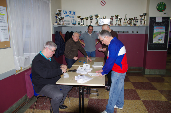 A 8 heures les participants sont encore peu nombreux, mais le kilométrage modéré permet des départs tardifs. La table des inscriptions a de toute façon de quoi voir venir, et avec le sourire.