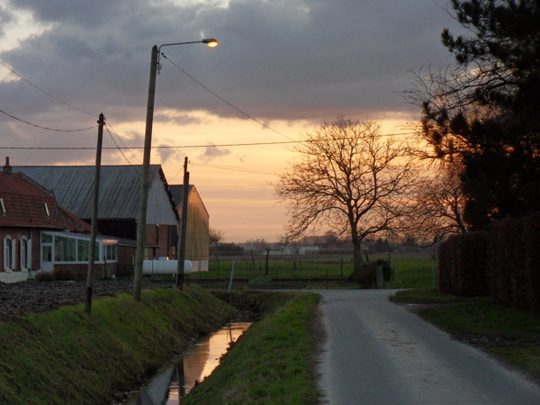 J’avais prévu de m’arrêter à Armentières, avec les alentours de Nieuwkerque en perspective mais, chemin faisant, Pérenchies me paraîtra d’un éloignement suffisant. Attiré sans doute par le soleil, je préférerai finalement mettre le cap à l’ouest en direction des Weppes. Rejoignant Wez Maquart et Ennetières en Weppes, je suivrai le circuit éponyme d’une petite quarantaine de kilomètres.