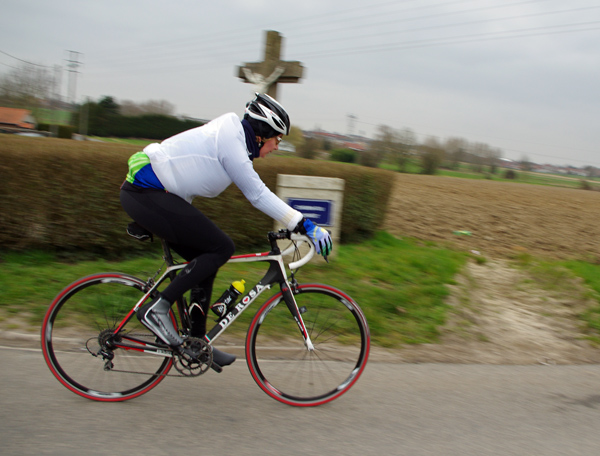 Côté photos, le temps ne se prêtait pas aux paysages. Pour ce qui est des cyclistes, la qualité est inégale. M’arrêtant de façon parfois un peu inopinée pour saisir un peloton je n’ai pas toujours le temps d’affiner les réglages, ce qui par faible luminosité ne pardonne pas. Je vais peut-être investir dans un de ces mini-rétroviseurs de guidon pour anticiper mes prises de vues.