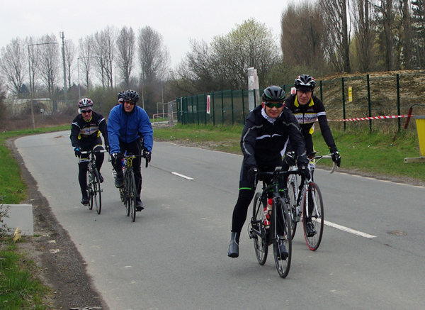 Pas de lilas en fleurs, seules les tenues des cyclistes apportent des tâches vives dans une dominante plutôt grise.