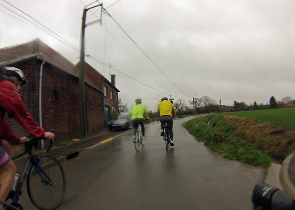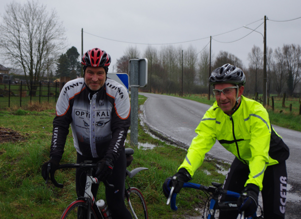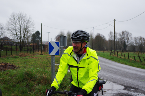 Une fois n’est pas coutume, je pars avec trois compagnons de route qui feront le 60 kilomètres.Pluie et vent sont bien présents et malgré une orientation ouest sud-ouest, nous n’aurons pas trop à en souffrir, la sinuosité de l’itinéraire faisant alterner portions avec vent contraire et vent de dos.