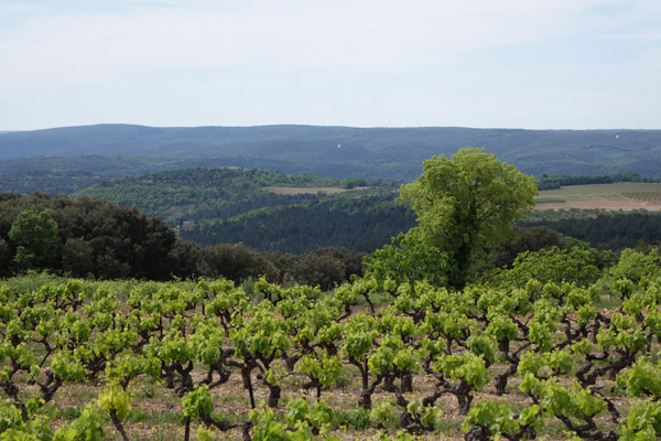 Au col de la Forestière, débute la plaisante descente vers Labastide de Virac et Vallon Pont d’Arc.