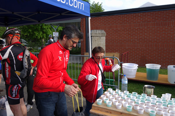 Après 28 km le ravitaillement de Marchiennes, près de trois cents participants sont déjà passés.