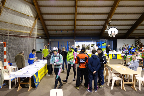 L’aube point à peine quand j’arrive à la salle Schuman. Quelques vélos sont comme à l’accoutumée appuyés sur les barrières. Les organisateurs nous inviteront à les surveiller de près, l’un d’eux ayant été prestement subtilisé un peu avant. Ce n’est pas, semble-t-il, un cas isolé dans les brevets. Prudence donc.