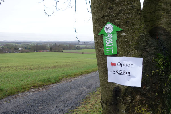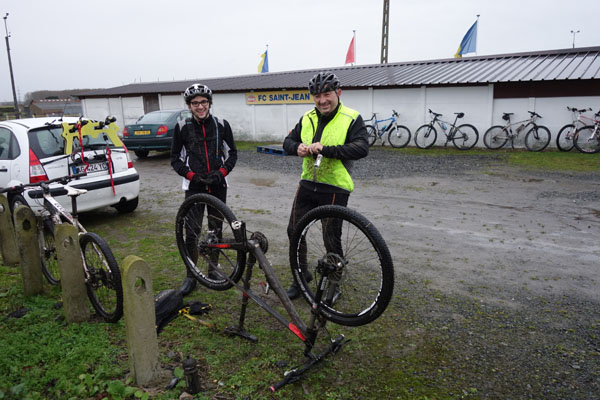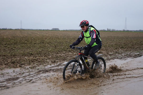 Après un itinéraire modifié à la dernière minute l’an dernier, nous eûmes enfin l’occasion de gravir le Mont Saint Aubert, tout au moins sur le 50 km. S’il fallut s’attaquer à des portions bien pentues, celles-ci furent dans l’ensemble moins boueuses que le reste du circuit. Les chemins étaient bien détrempés après les pluies de ces derniers jours et les portions inondées fréquentes. Ceci eut pour conséquences de nous retrouver les pieds mouillés assez vite après le départ mais aussi de nettoyer régulièrement pneus, voire transmissions.