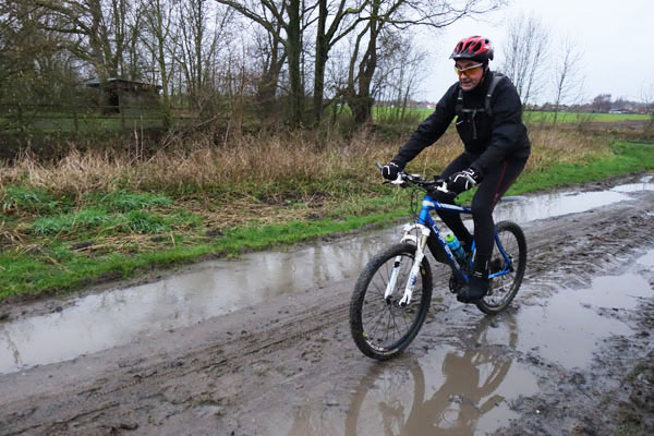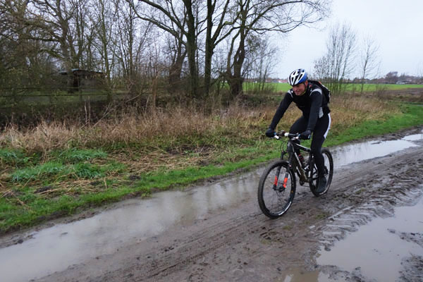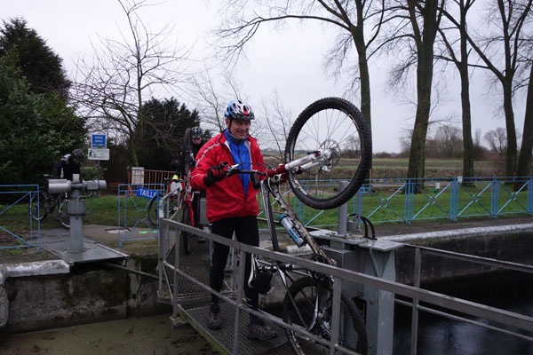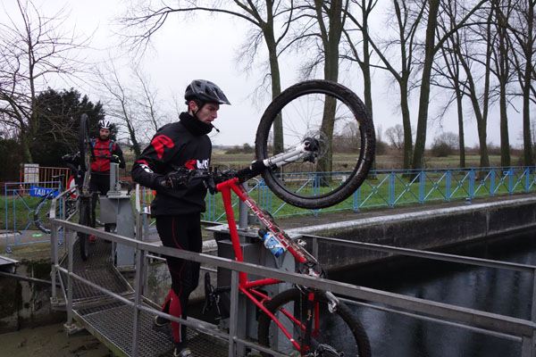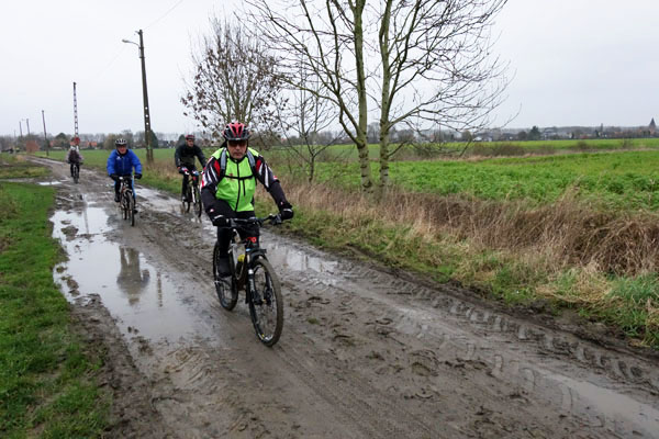 Après une première portion sur un chemin de halage, s’enchainaient chemins agricoles, secteurs pavés, champs. Il fallut souvent mouliner, la portion la plus rude se situant vers la fin où une longue ligne droite était difficile à franchir sans mettre pied à terre à un moment ou à un autre, le cheminement étant particulièrement glissant.