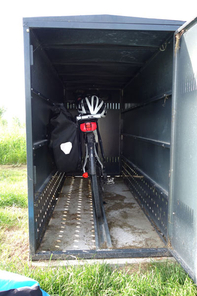 Le stationnement, première préoccupation du cycliste qui se rend au Mont Saint Michel. Arceaux ou caissons (bien moins nombreux) sont à disposition.