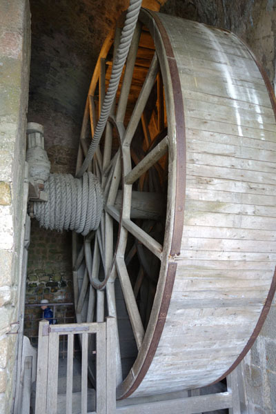 La roue installée au 19ème siècle afin de monter la nourriture destinée aux prisonniers alors que l’abbaye avait été transformée en prison.