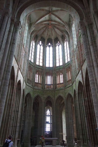 L’abbaye vaut d’être visitée tant pour son architecture que pour les points de vue qu’elle ménage. Terre et mer s’interpénètrent au gré des marées, renouvelant le paysage. La faim et le souhait de pousser vers Saint Malo me font redescendre et rejoindre l’effervescence des rues commerçantes que je m’empresse de traverser.