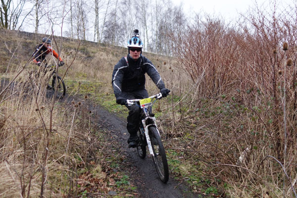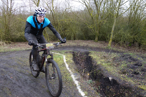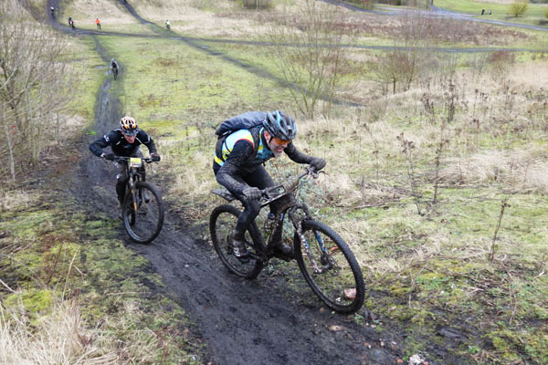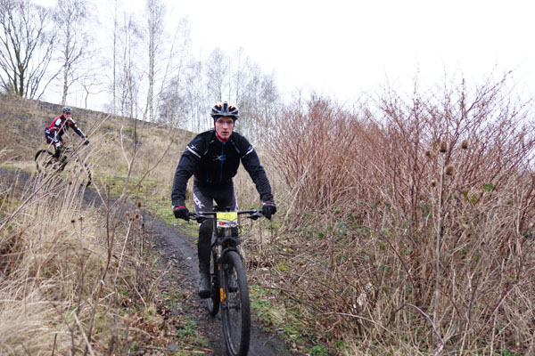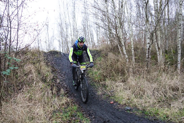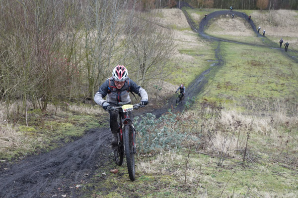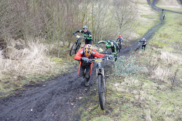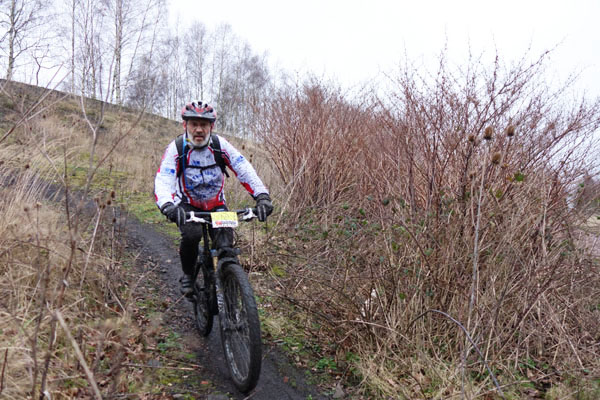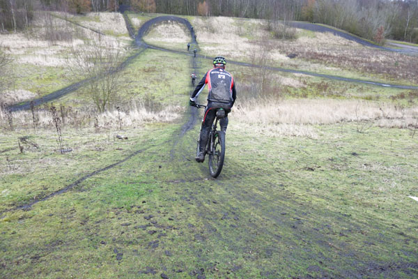 Passé le ravitaillement, des chemins agricoles nous conduisaient au terril de Sin, deuxième de la liste. Le profil était franchement différent l’itinéraire faisant de nombreux lacets pour enchaîner montées et descentes, suffisamment raides pour certaines, pour en contraindre plus d’un à mettre pied à terre. Avec ce terrain gras, il fallait en avoir dans les jambes pour tout franchir sans faillir. Ce ne fut pas mon cas.