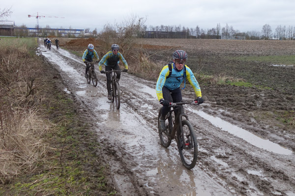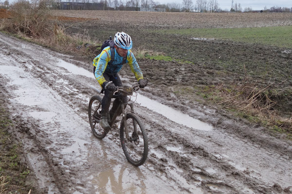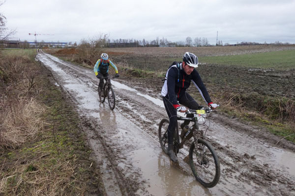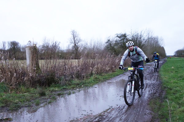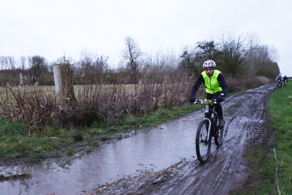 Assez vite après le départ, un premier tronçon bien détrempé mettait dans l’ambiance et constituait un échauffement efficace. Une longue portion plus sèche permettait ensuite de récupérer même s’il fallait compter avec le vent de face.