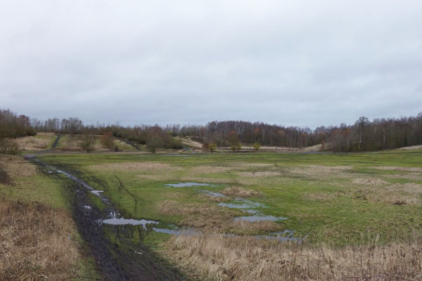 Le terril de Lallaing était le premier au menu. Pas de difficulté particulière, le sol n’étant pas trop détrempé et le cheminement sans trop de dénivelés abrupts. Le randonneur pouvait à loisir profiter des paysages riches en plans d’eau.