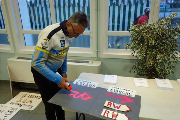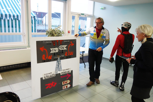 Roland Decoster met la dernière main au panneau d’information expliquant le balisage, fort bien fait au demeurant.