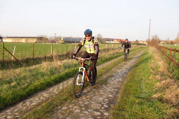 Pas de difficulté en VTT pour absorber cette longue portion pavée.