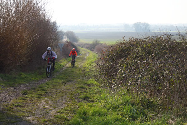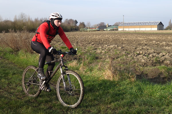 Les premiers kilomètres permettront de poursuivre l’entreprise de montée en température en moulinant gentiment. Le terril de Râches nous attendait avec un sol durci rendant le pédalage sans comparaison avec celui de dimanche dernier. Il fallait néanmoins se garder de piégeuses ornières gelées.