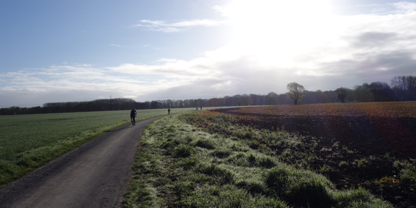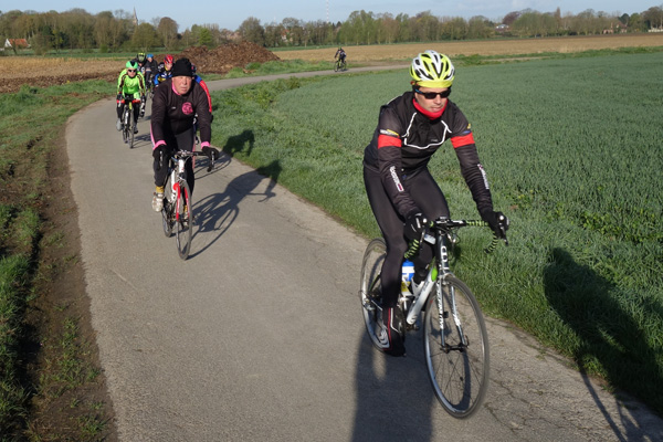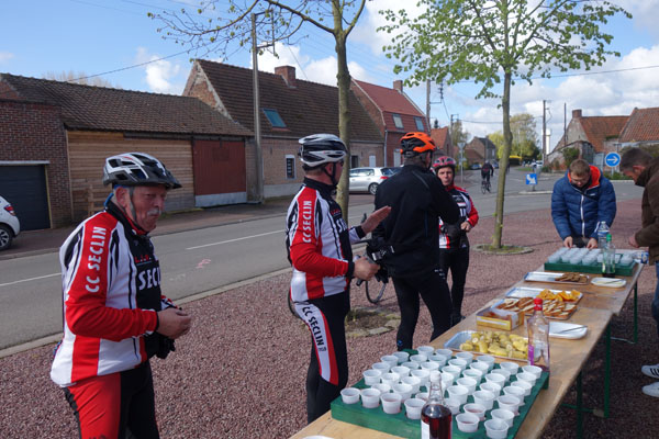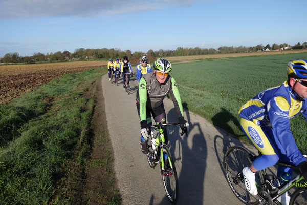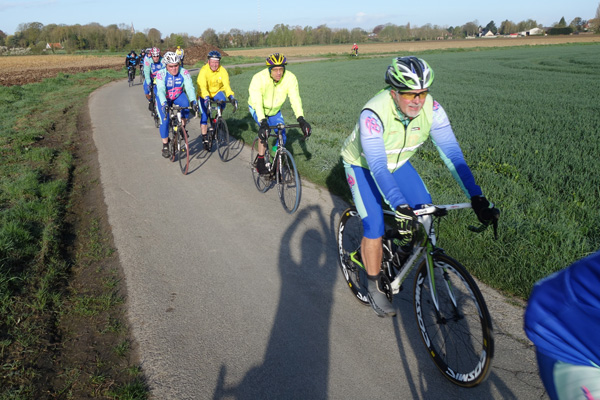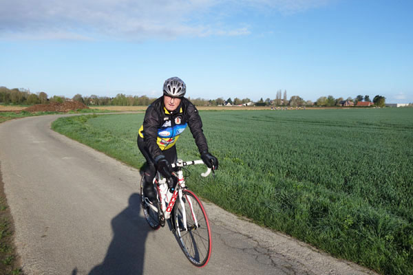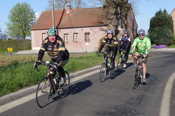 Mais qu’importe, pédaler dans la verte campagne sous un ciel pommelé est un plaisir pour moi toujours renouvelé. Le circuit combinait portions sinueuses et longues lignes droites offrant un parcours roulant et varié. Le franchissement de Mons en Pévèle, seule difficulté au programme nous fera zigzaguer dans la commune, non sans passer par le Pas de Roland.