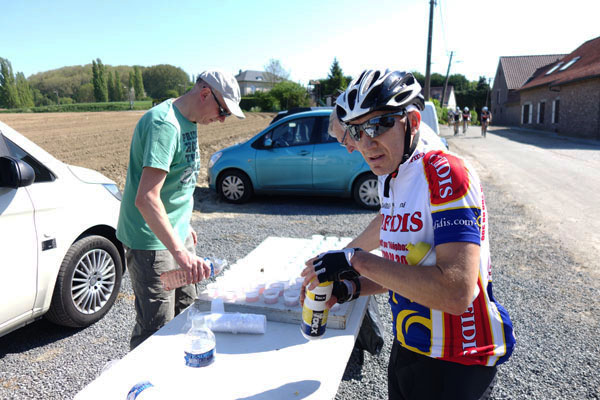 Premier ravitaillement où il sera question de tracteurs dont un ou deux rencontrés ce matin, toutes herses dehors, firent peu de cas des cyclistes croisés. Il valait mieux tenir sa droite.