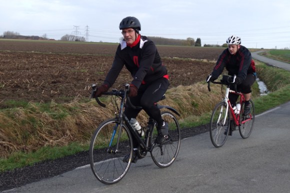 Sortie de décrassage pour David à gauche qui a participé samedi avec une quarantaine de courageux au BRM 200, bien arrosé, organisé par le club de Lambersart.